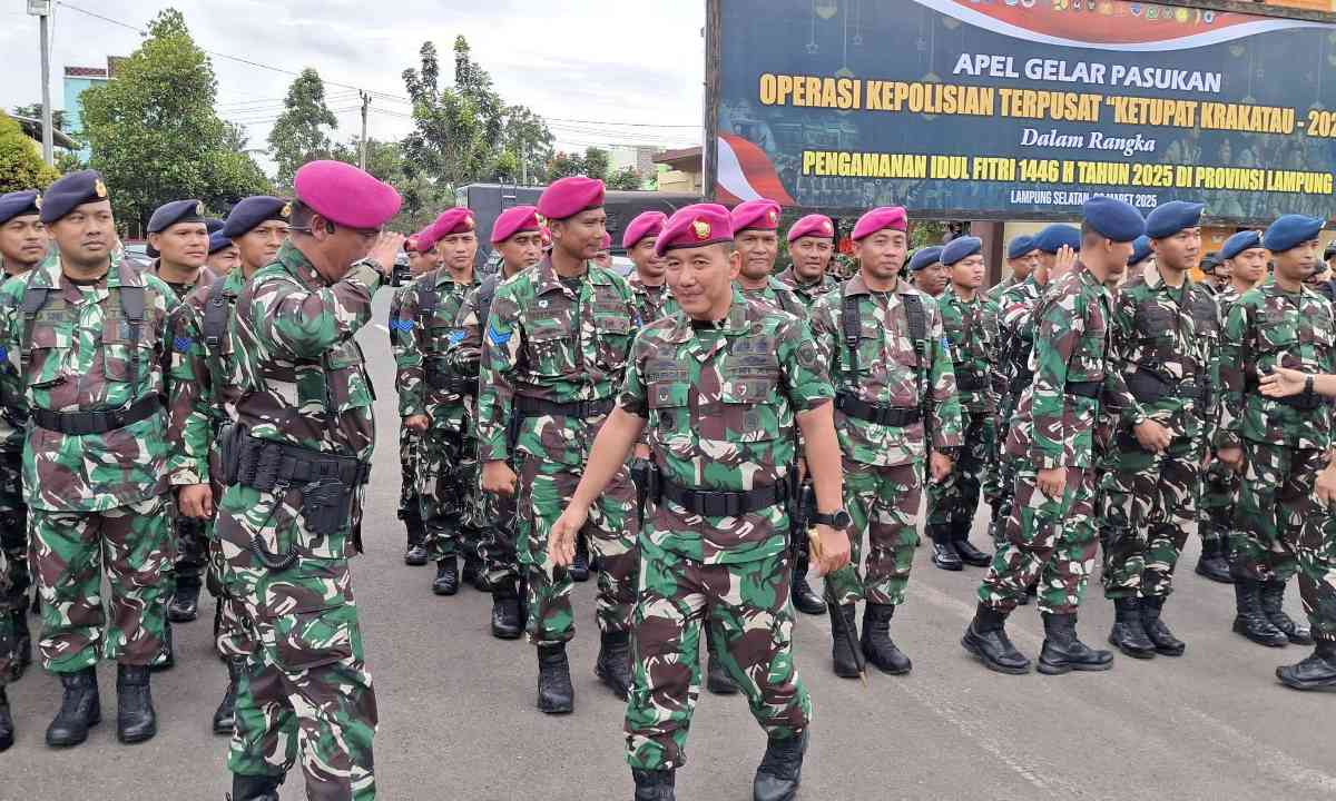 Bandar Lampung (LB): Komandan Brigade Infanteri (Danbrigif) 4 Mar/BS, Kolonel Mar Supriadi Tarigan menghadiri Apel Gelar Pasukan Operasi Ketupat Krakatau 2025 dalam rangka pengamanan Idul Fitri 1446 H Tahun 2025 di Lapangan Apel Polda Lampung Jl. Terusan Ryacudu, Way Huwi, Kecamatan Jati Agung, Kabupaten Lampung Selatan, Provinsi Lampung, Kamis (20/3/2025).