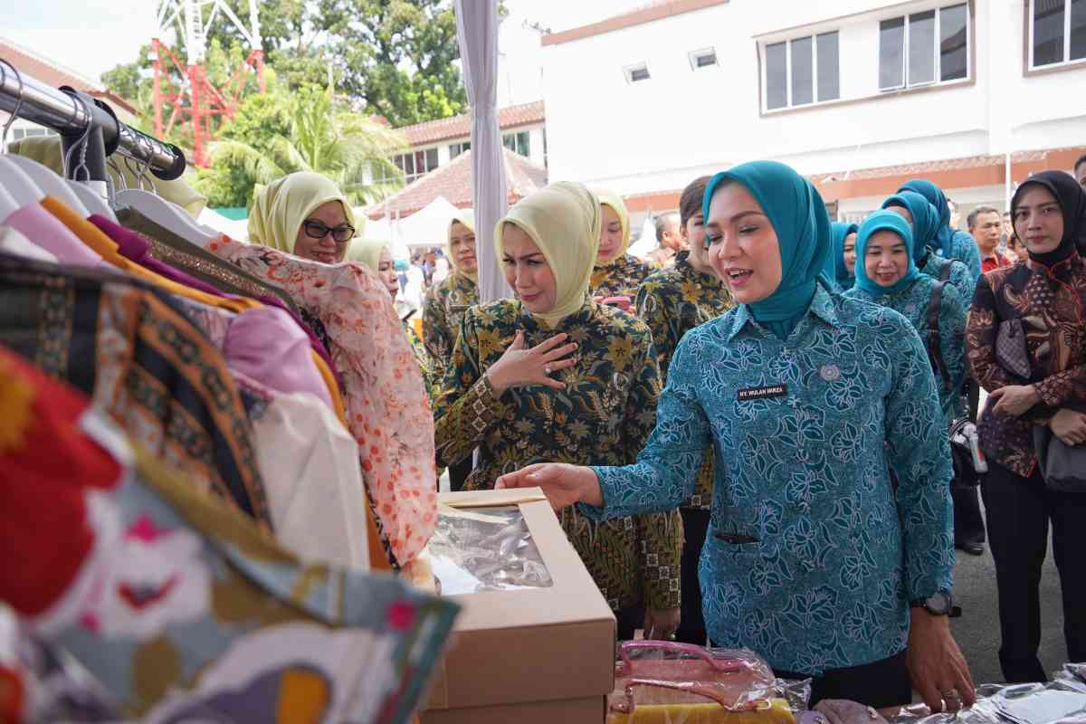 Setibanya di lokasi, Wulan Mirzani meninjau stan pasar murah yang menjual berbagai barang kebutuhan pokok dengan harga yang terjangkau.