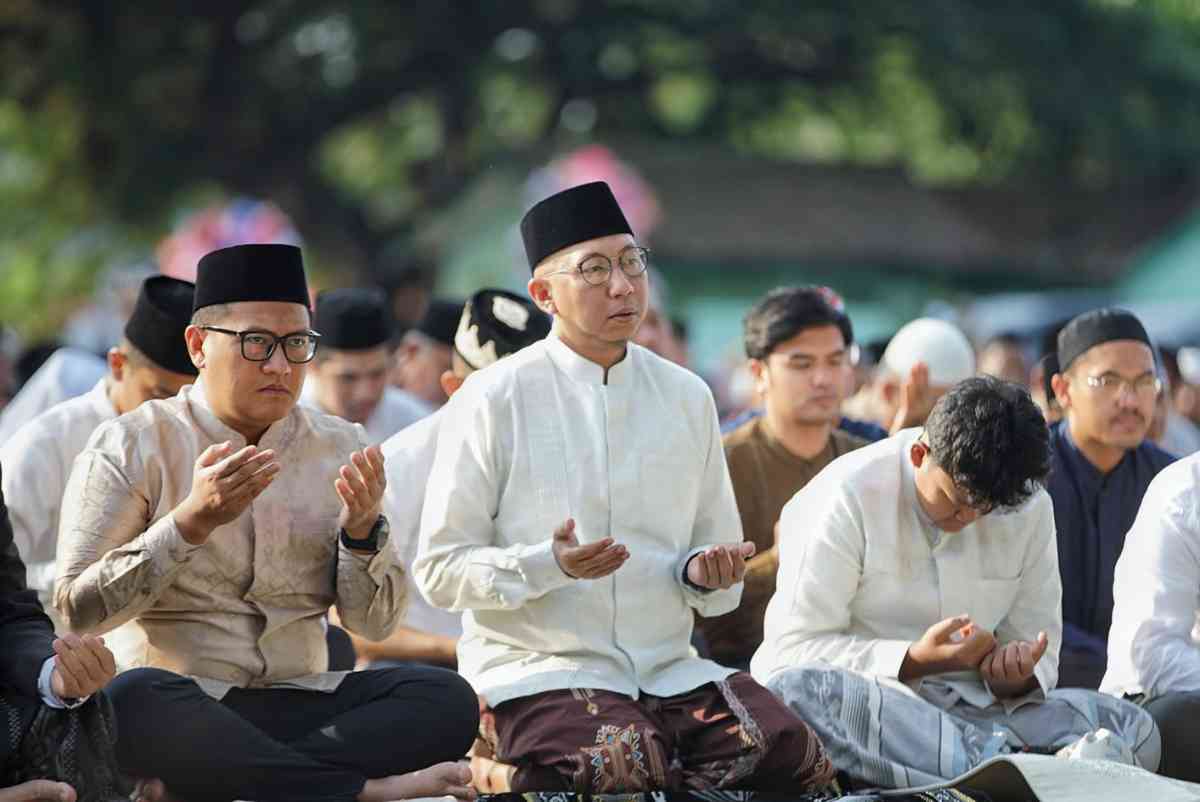 Bandar Lampung (LB): Gubernur Lampung Rahmat Mirzani Djausal melaksanakan salat Idul Adha 1446 H bersama ribuan warga di Lapangan Saburai Bandar Lampung, Jumat (6/6/25).