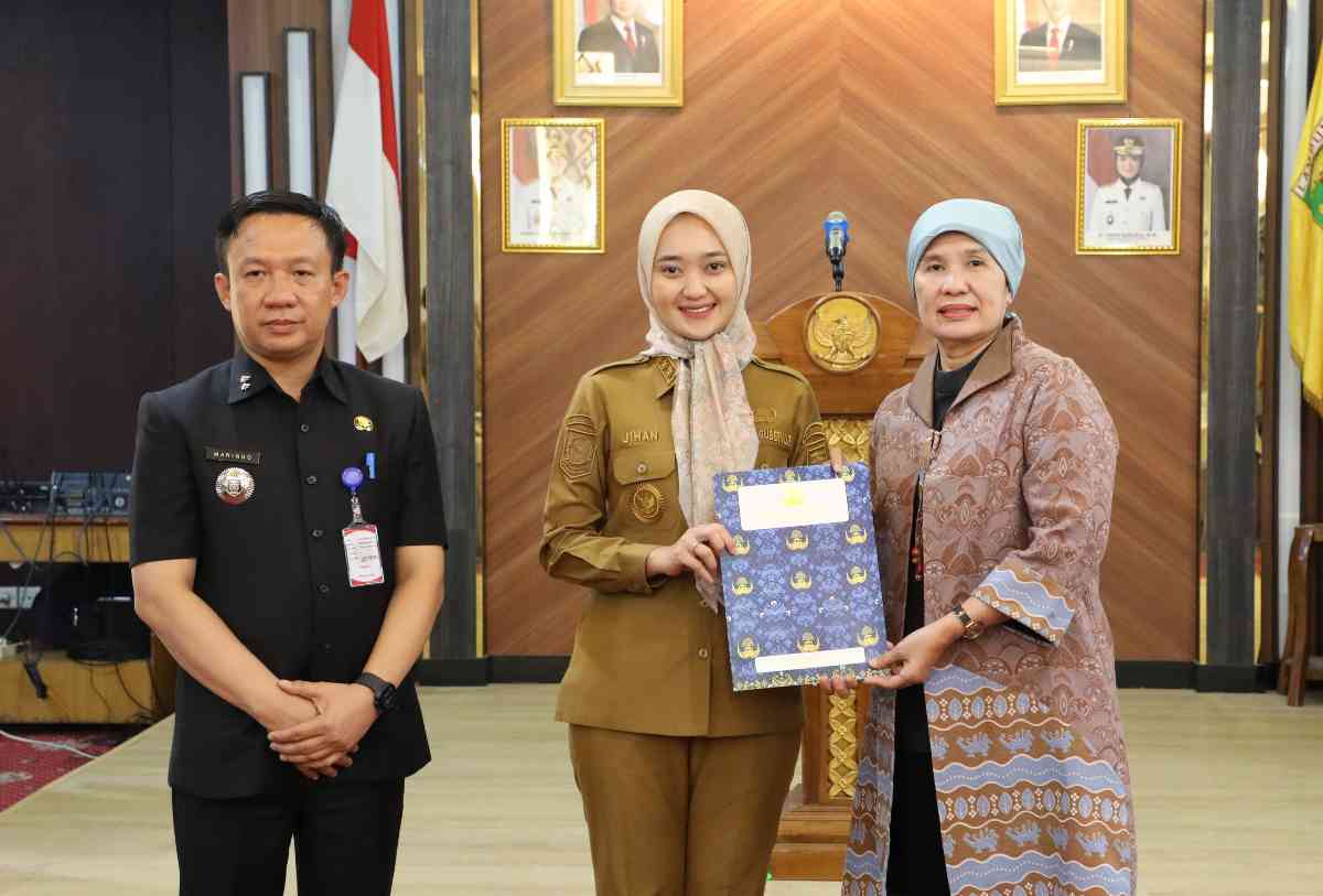 Bandar Lampung (LB): Kepala Dinas Lingkungan Hidup Provinsi Lampung, Emilia Kusumawati purnabakti setelah mengabdi sebagai ASN selama 34 tahun dan dilepas resmi Wakil Gubernur Lampung Jihan Nurlela dan Sekdaprov Marindo Kurniawan di Balai Keratun Komplek Kantor Gubernur Lampung, Bandarlampung, Selasa (1/7/25).