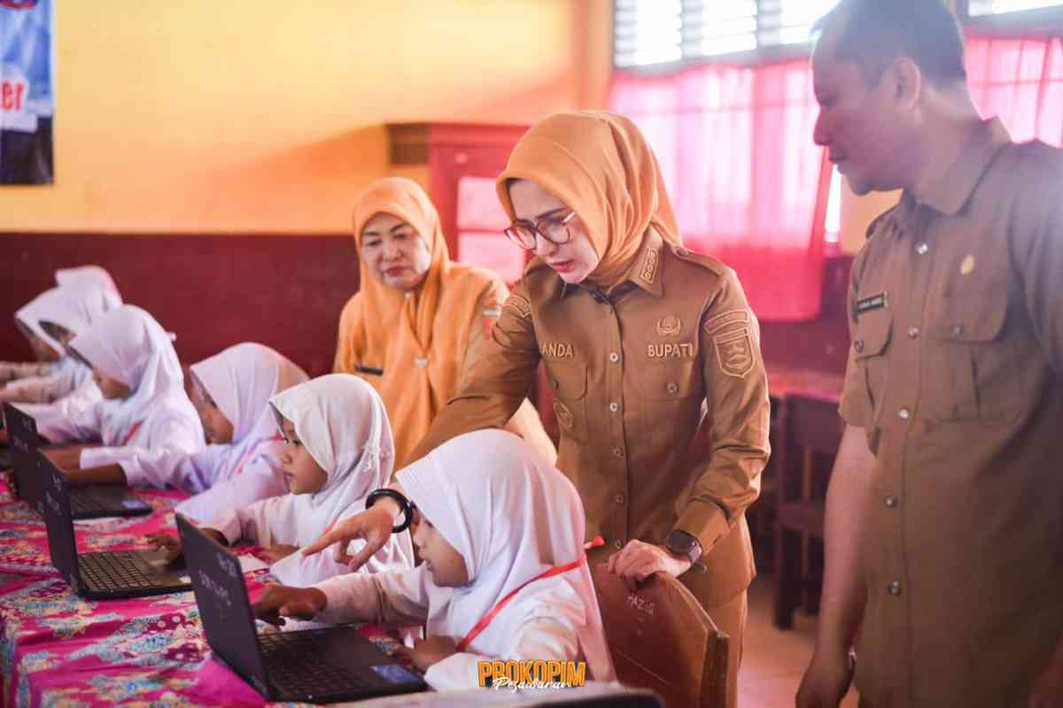 Pesawaran (LB): Bupati Pesawaran Nanda Indira meninjau pelaksanaan Asesmen Nasional Berbasis Komputer (ANBK) di UPTD SDN 14 Padang Cermin, Senin (22/9/2025).