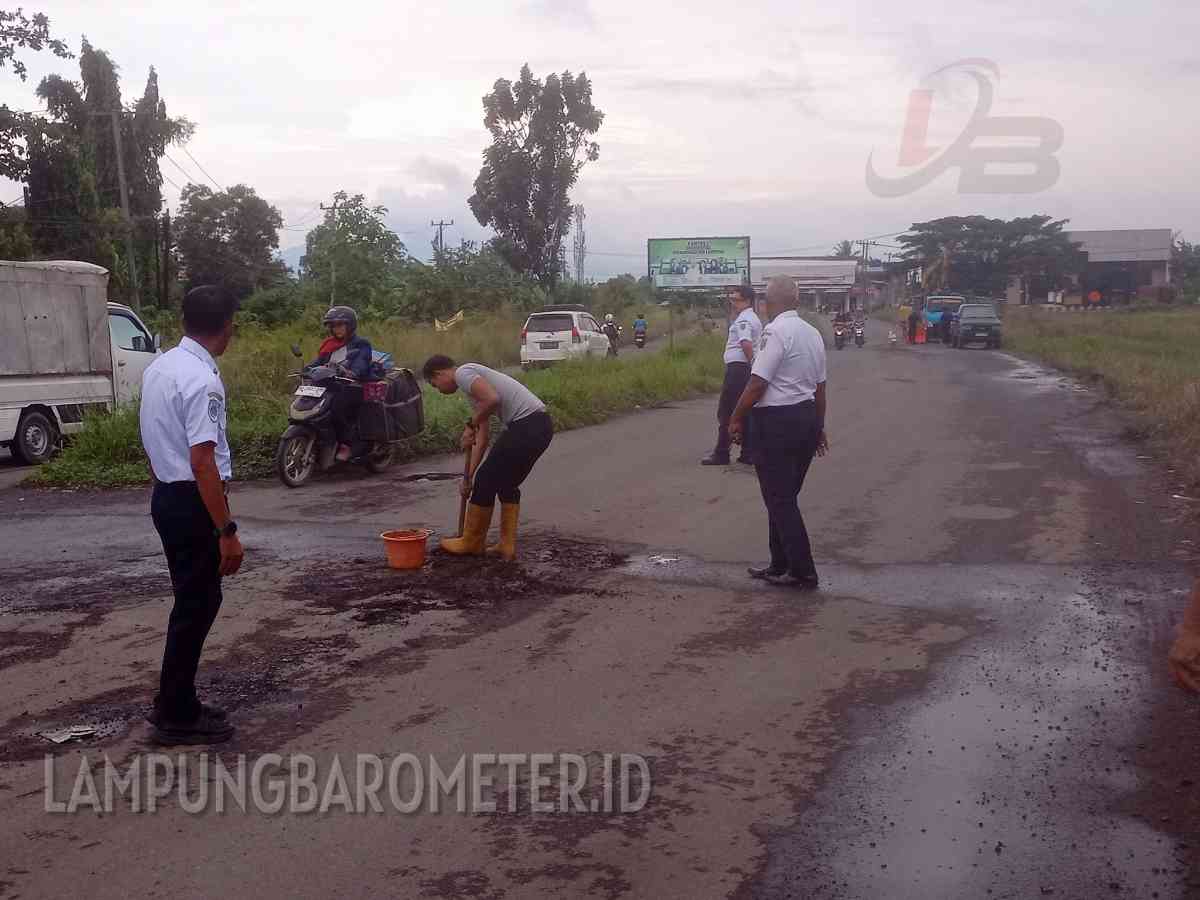 ‎Menindaklanjuti hal tersebut, Dinas Perhubungan Provinsi Lampung langsung melakukan perbaikan dengan mengecor lubang-lubang di badan jalan untuk mencegah resiko yang ditimbulkan akibat kondisi tersebut, Selasa (18/11/2025).