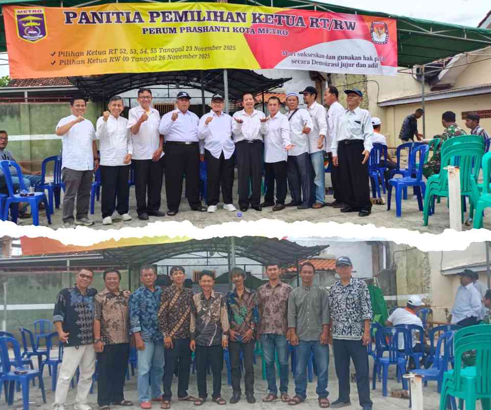 ‎Metro (LB): Empat RT di lingkungan Perumahan Prasanti Garden RW 09, Kelurahan Metro, Kecamatan Metro Pusat, Kota Metro, melaksanakan pemilihan Ketua RT serentak secara langsung, Minggu (23/11/2025) dengan dihadiri Lurah Metro Ferry Wahyudi, S.I.P.