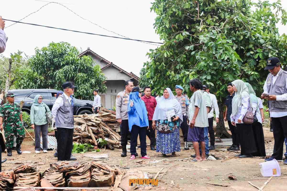 Bupati berdialog langsung dengan warga dan meninjau kondisi rumah yang mengalami kerusakan, terutama pada bagian atap yang terangkat akibat terjangan angin.