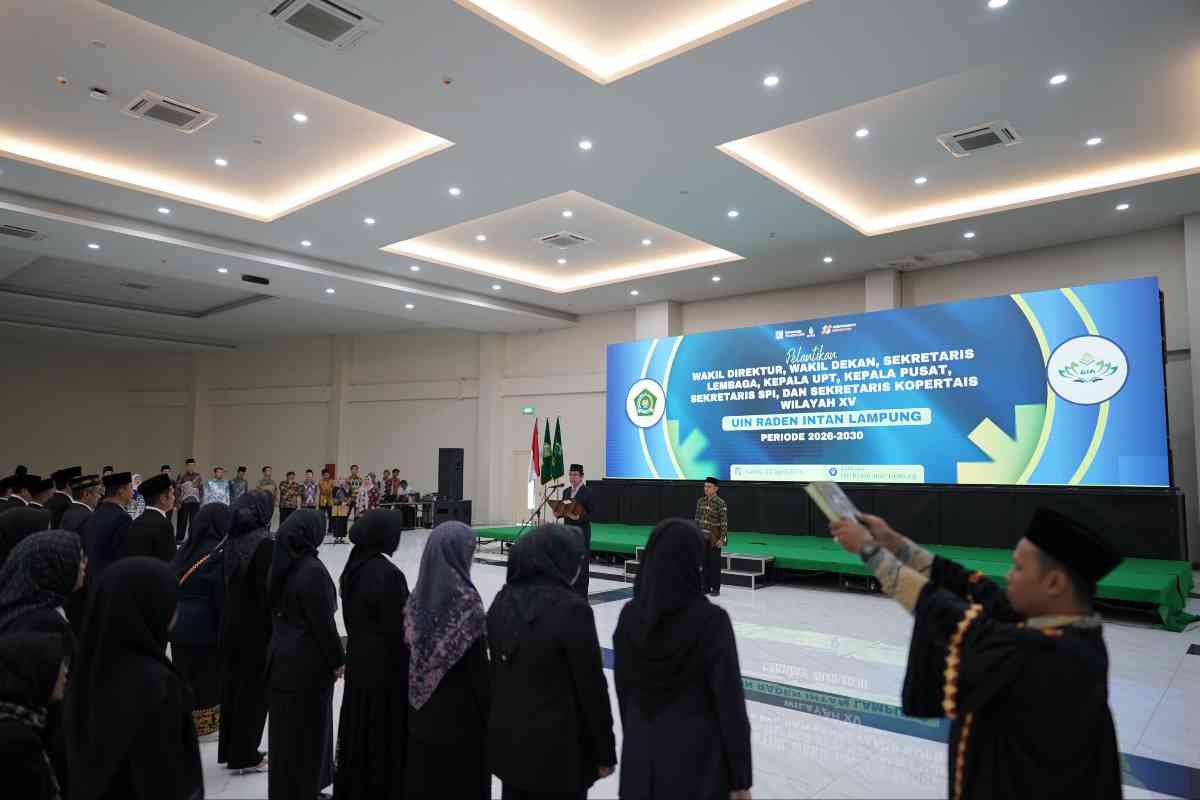 Bandar Lampung (LB): Rektor Universitas Islam Negeri (UIN) Raden Intan Lampung (RIL) Prof. H. Wan Jamaluddin Z., M.Ag., Ph.D. melantik sejumlah pejabat di lingkungan kampus untuk masa jabatan 2026–2030 di Ballroom kampus tersebut, Kamis (2/4/2026).