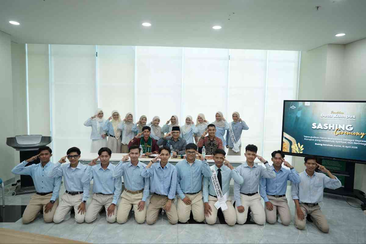 Bandar Lampung (LB): Sebanyak 20 mahasiswa resmi menyandang status finalis dalam Pemilihan Duta Kampus UIN Raden Intan Lampung 2026. Penetapan itu ditandai melalui prosesi penyematan slempang secara simbolis dalam Sashing Ceremony yang digelar di Ruang Meeting Lantai 1 Gedung Academic & Research Center, Kamis (16/04/2026).